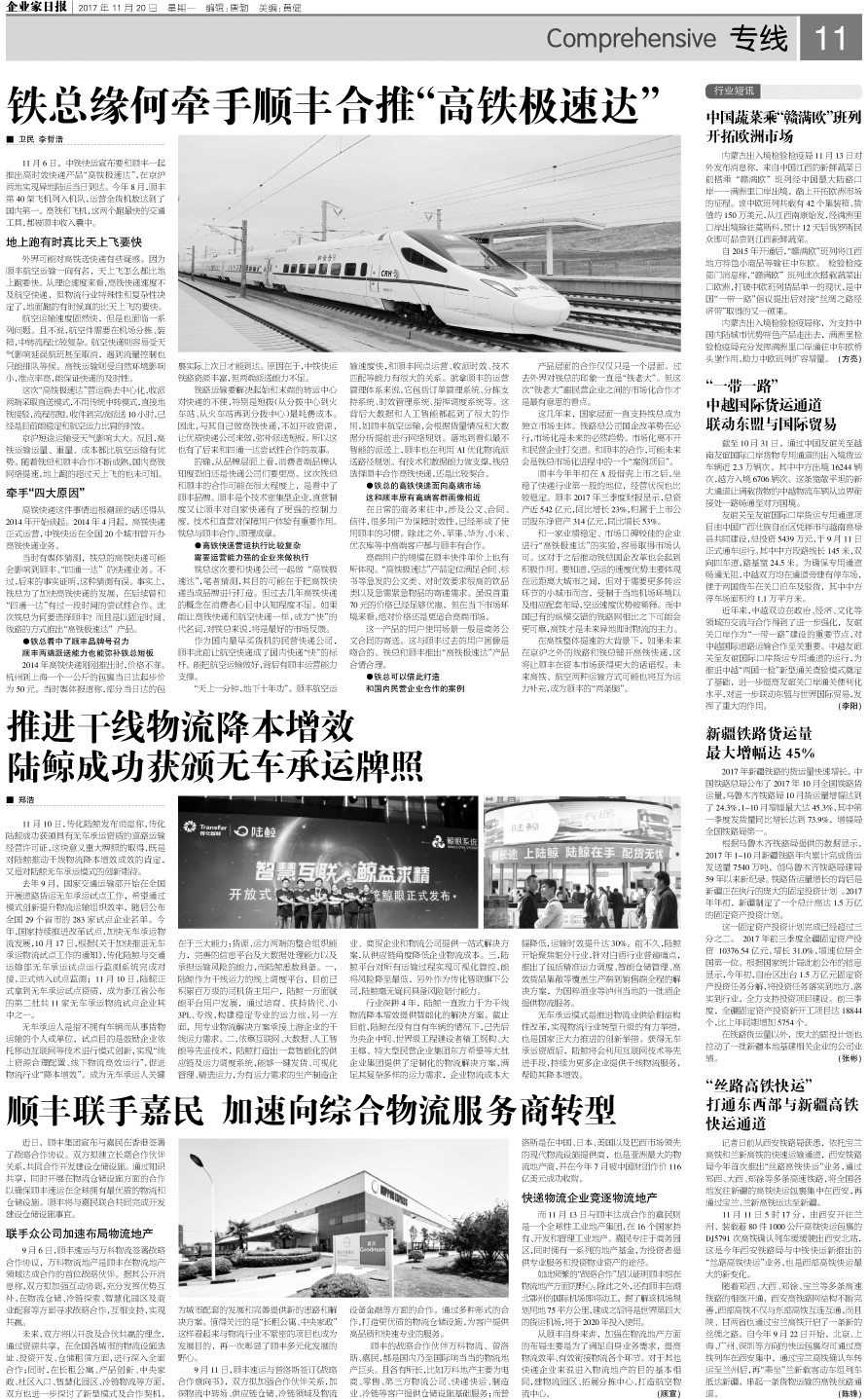 铁总缘何牵手顺丰合推“高铁极速达”...