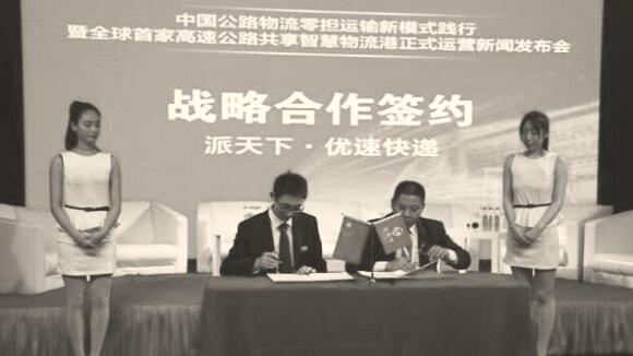 随后,派天下与优速快递、锦绣大地以及一汽解放分别进行了战略合作签约仪式,派天下高速公路共享智慧物流港项目收到社会多方认可。