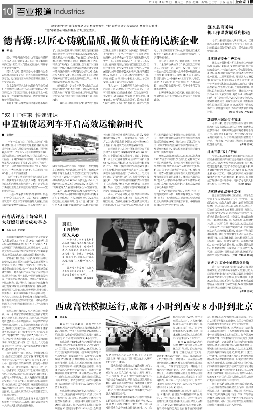 “双11”结束 快递速达 中置轴货运列车开启高效...