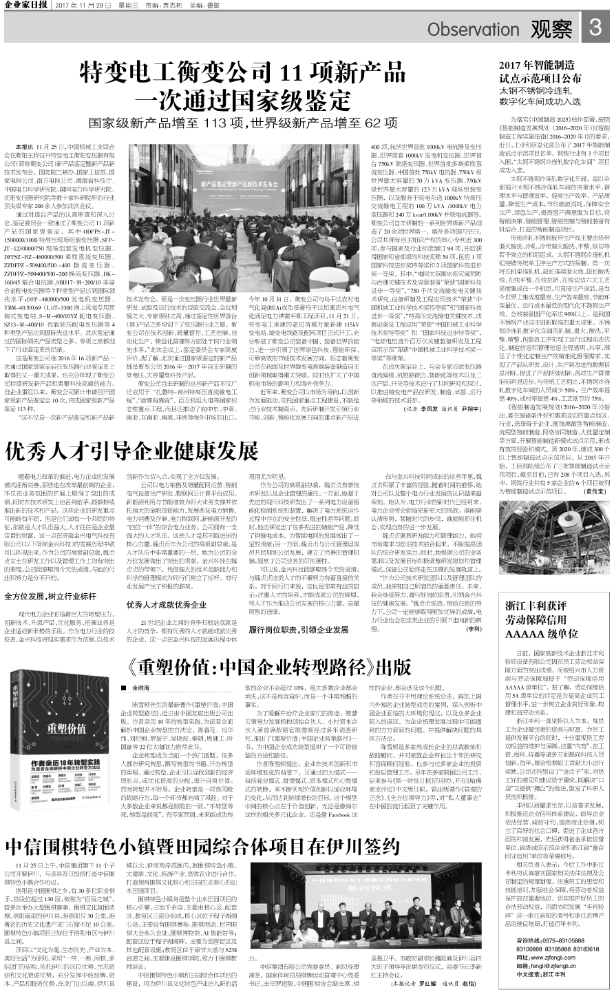 特变电工衡变公司11项新产品 一次通过国家级鉴...