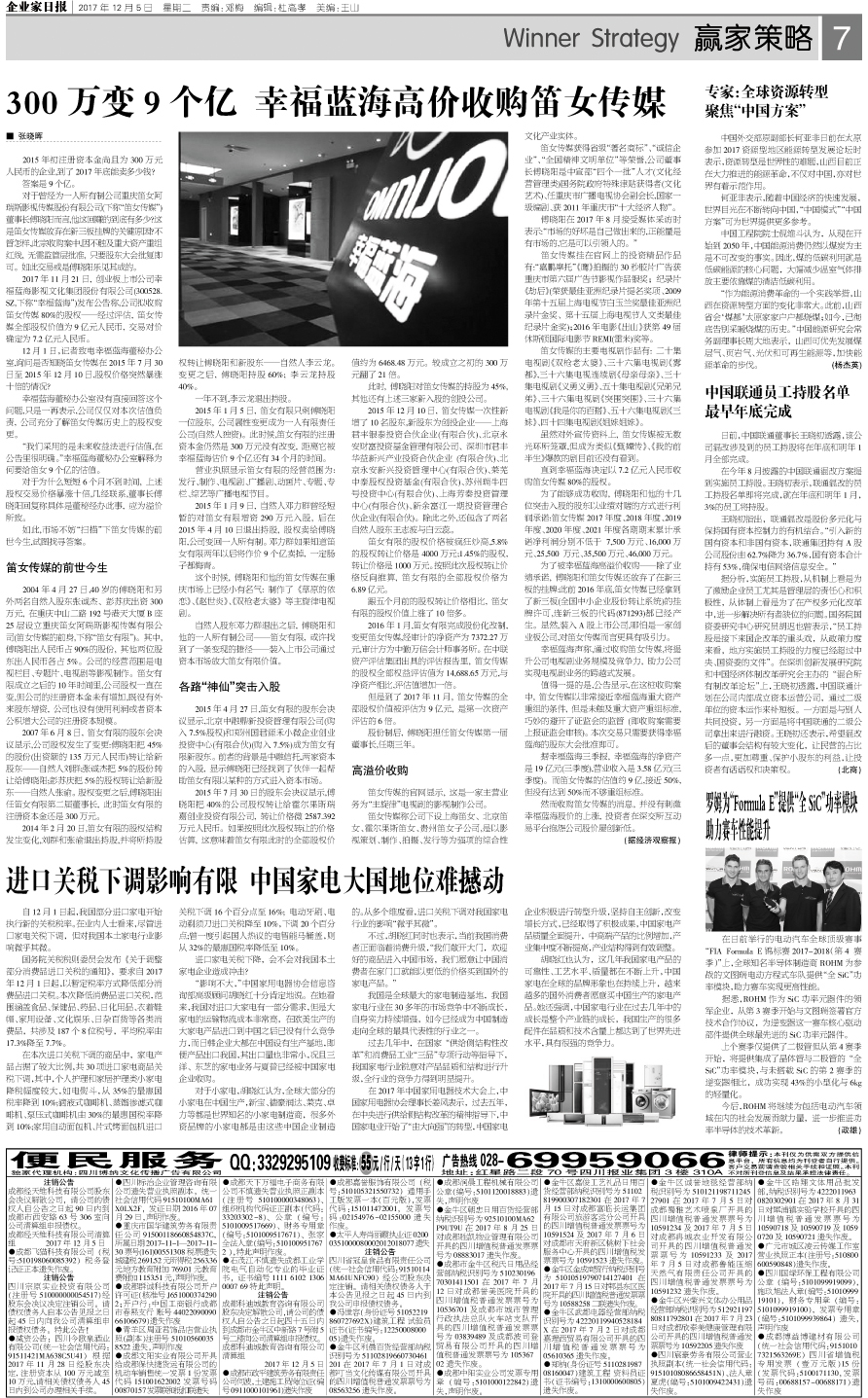 300万变9个亿 幸福蓝海高价收购笛女传媒...