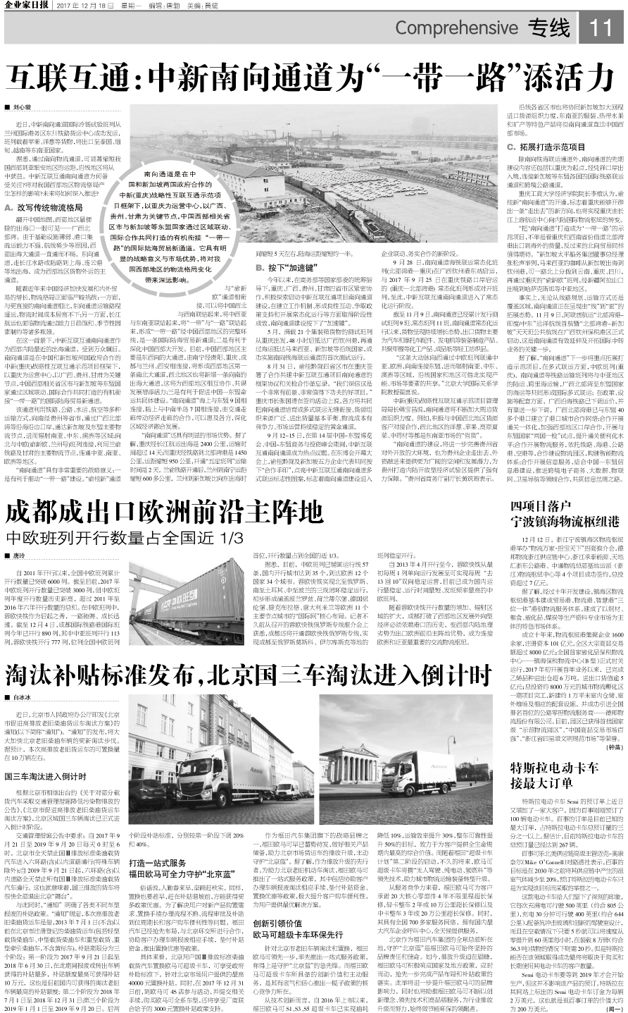 互联互通:中新南向通道为“一带一路”添活力...