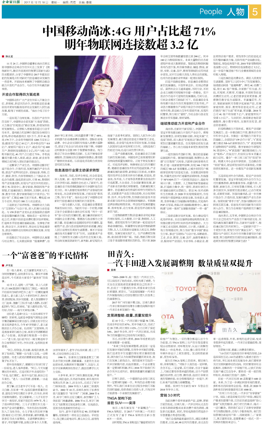 中国移动尚冰:4G用户占比超71% 明年物联网连...