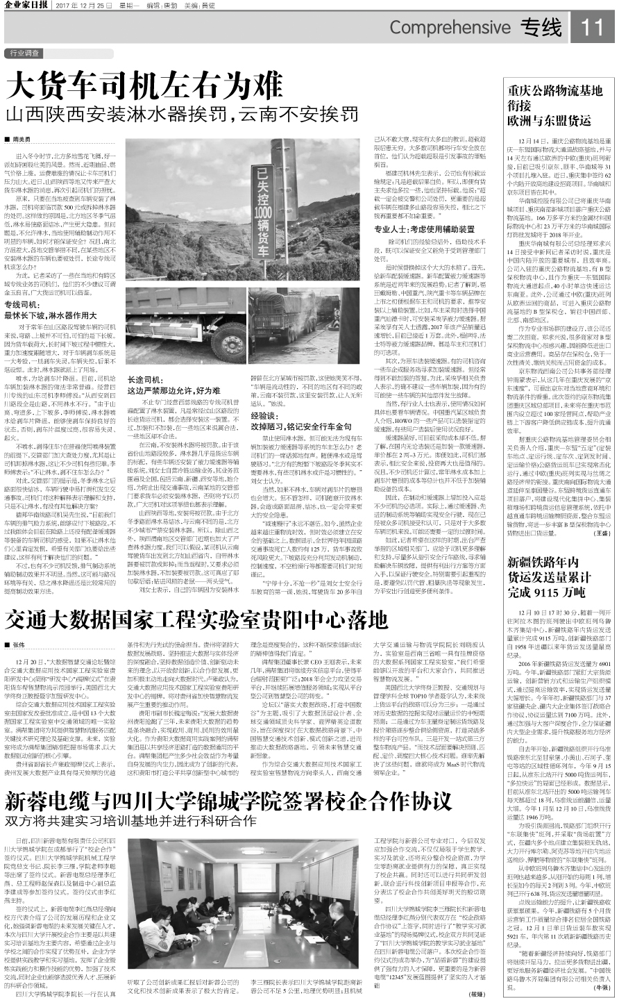 大货车司机左右为难 山西陕西安装淋水器挨罚,...
