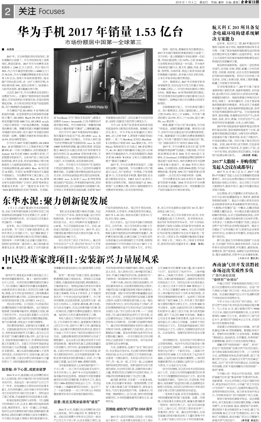 华为手机2017年销量1.53亿台 市场份额居中国第...