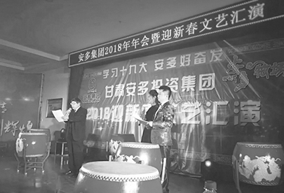 2017年12月28日,甘肃安多集团以“不忘初心,砥砺前行,精诚团结,再创辉煌”为主题,举办了2017年总结及谋划2018年工作交流座谈年会。本次年会是安多集团跨入畜牧产业以来较大的一次会议,既对过去一年的工作总结,又对来年工作进行谋划部署,表彰了过去一年在各项工作作出突出贡献的优秀职工和团队;同时,邀请兄弟单位同台演出,共迎新年,一起分享了丰盛的精神大餐。