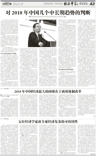 2018年中国经济最大的困难在于政府体制改革...