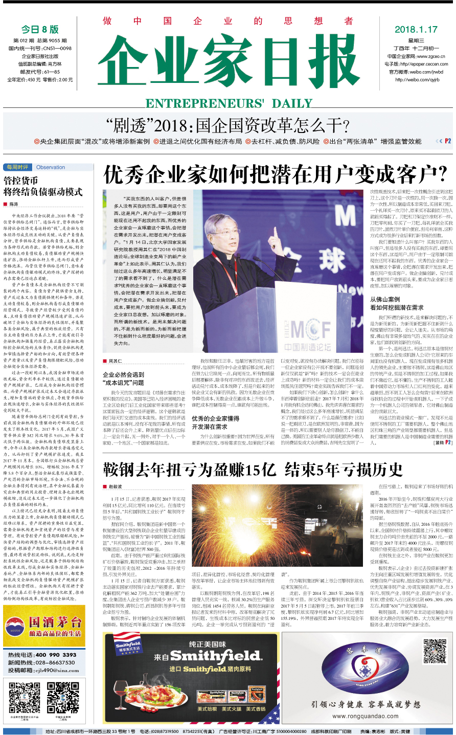 国内统一刊号:CN51—0098 中国•企业家日报