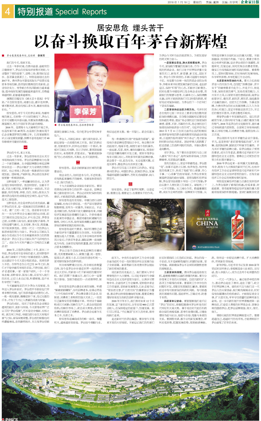 以奋斗换取百年茅台新辉煌