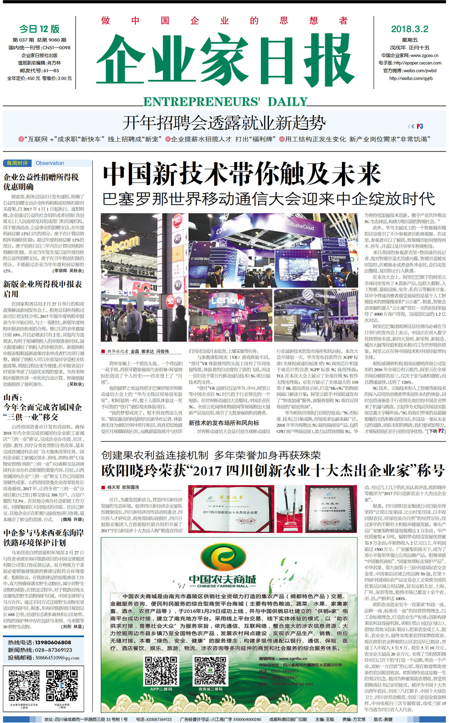 欧阳晓玲荣获“2017四川创新农业十大杰出企业家...
