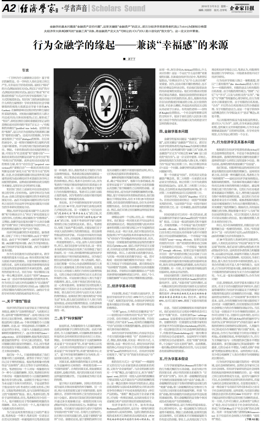行为金融学的缘起——兼谈“幸福感”的来源...