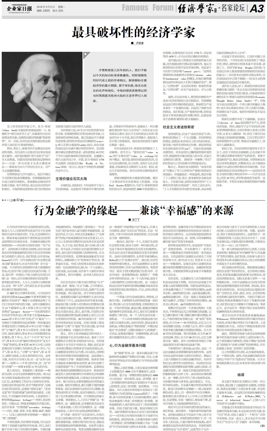 行为金融学的缘起——兼谈“幸福感”的来源...
