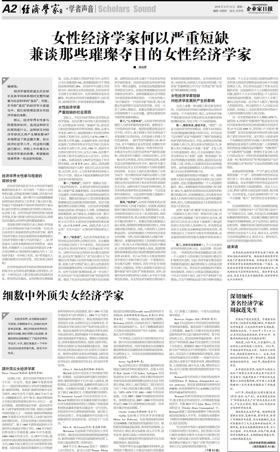 女性经济学家何以严重短缺 兼谈那些璀璨夺目的...