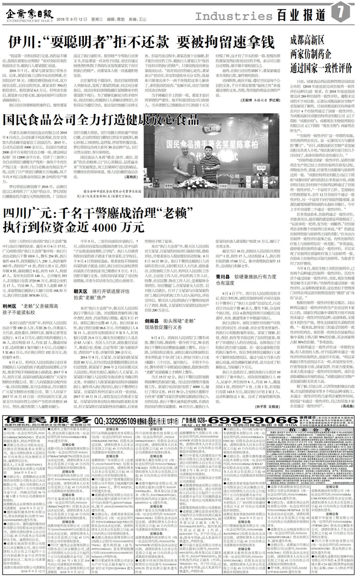 国内统一刊号:CN51—0098 中国•企业家日报