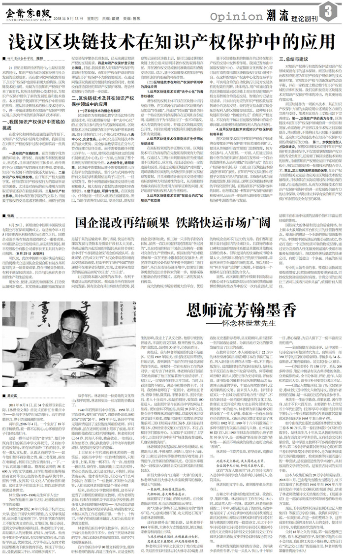 恩师流芳翰墨香 ——怀念林世堂先生...