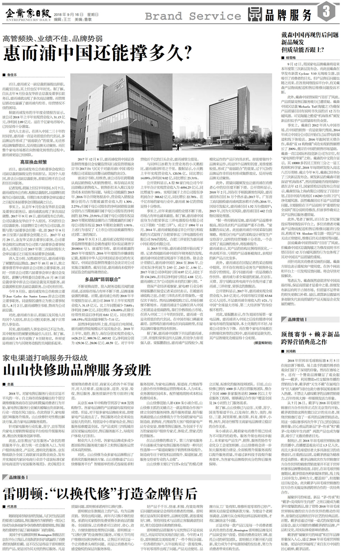 高管频换、业绩不佳、品牌势弱 惠而浦中国还能...
