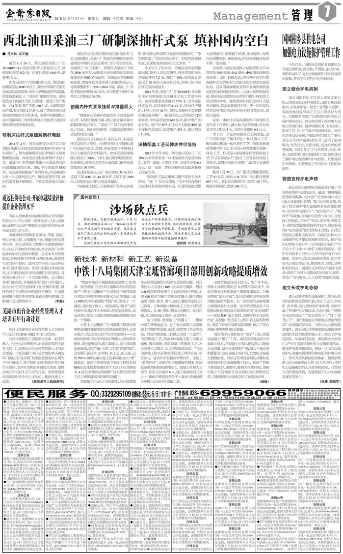 西北油田采油三厂研制深抽杆式泵 填补国内空白...