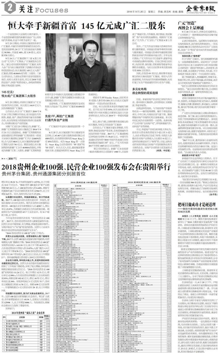 2018贵州企业100强、民营企业100强发布会 在贵...