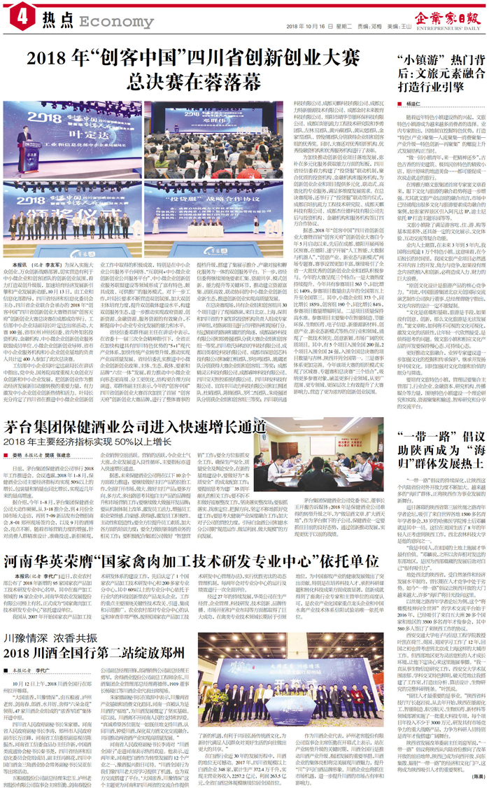 国内统一刊号:CN51—0098 中国•企业家日报