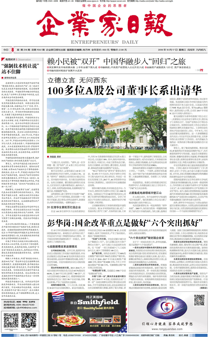 国内统一刊号:CN51—0098 中国•企业家日报