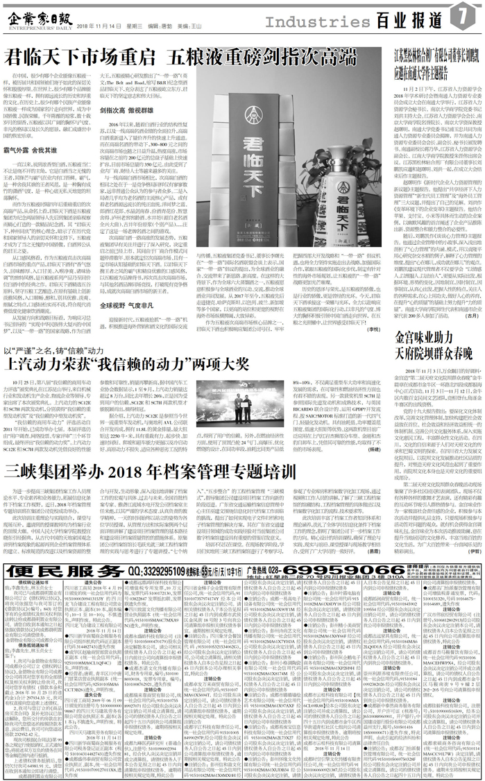 国内统一刊号:CN51—0098 中国•企业家日报