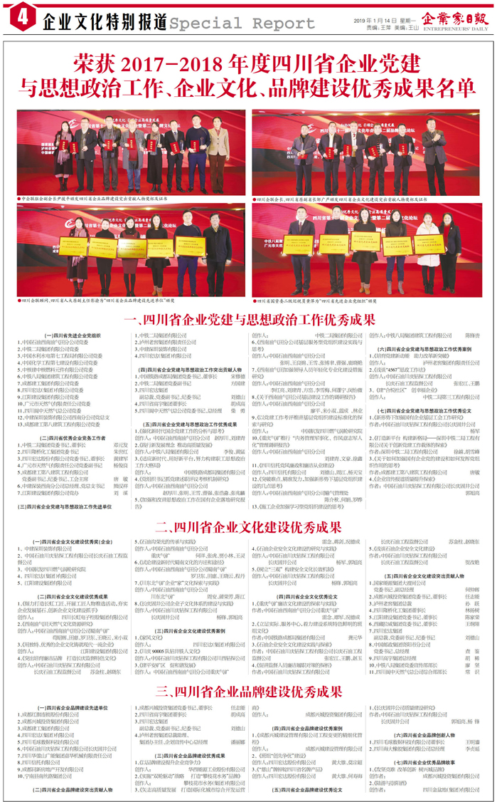 荣获2017-2018年度四川省企业党建 与思想政治工...