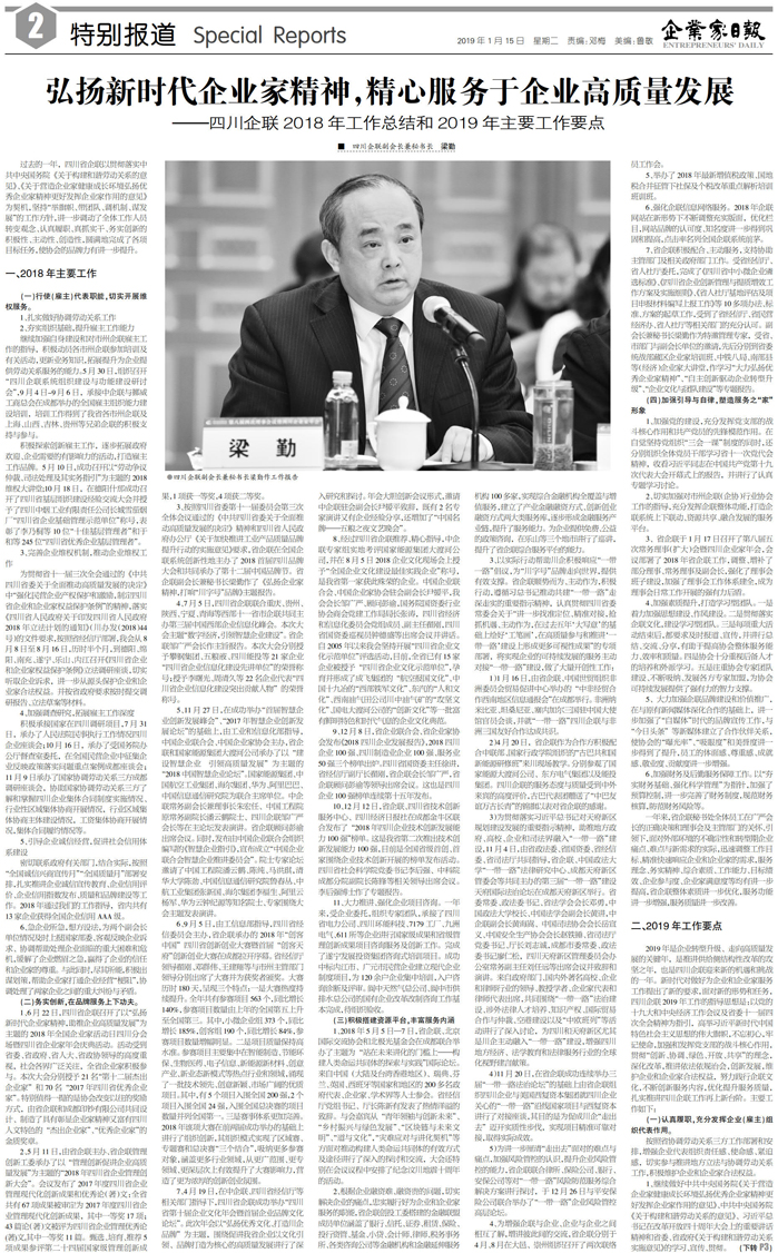 国内统一刊号:CN51—0098 中国•企业家日报