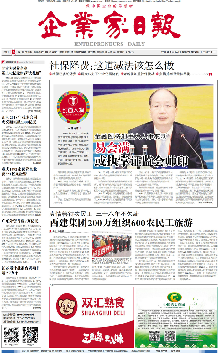 国内统一刊号:CN51—0098 中国•企业家日报