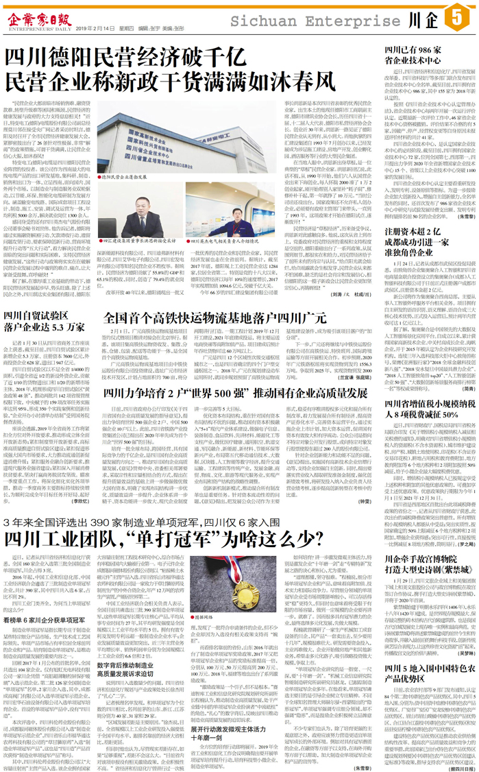 国内统一刊号:CN51—0098 中国•企业家日报