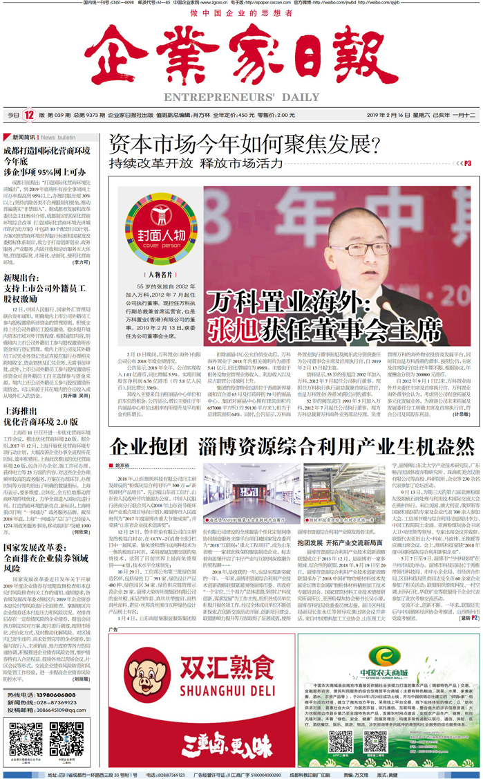 国内统一刊号:CN51—0098 中国•企业家日报