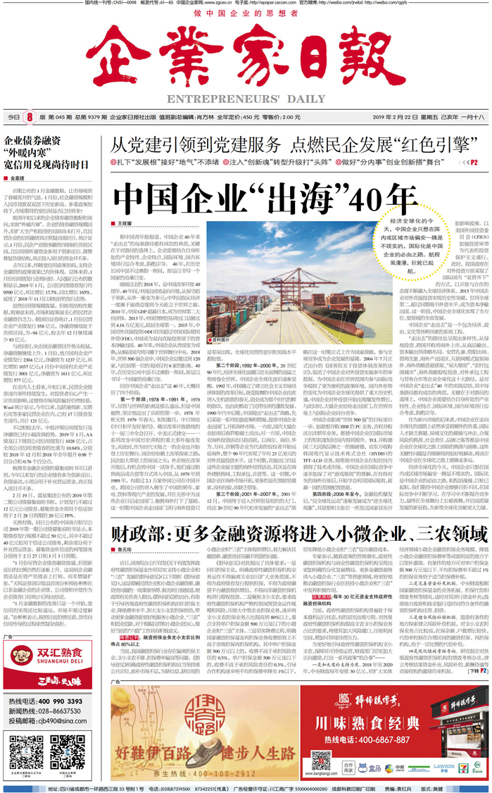 国内统一刊号:CN51—0098 中国•企业家日报