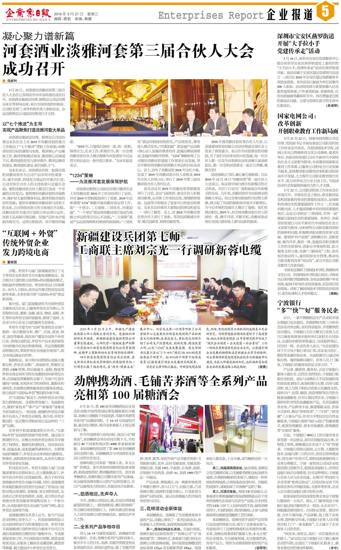 风劲扬帆正当时,凝心聚力谱新篇。自从2016年12月15日“淡雅河套”第一届合伙人大会成立,标志着中国白酒合伙新模式的正式形成,开启了行业内厂商和商商合作新模式的先河。几年来,淡雅河套作为河套酒业的战略大单品,经过全体经销商的共同努力拼搏,建立起了巩固的根据地市场并不断增长,为今后市场的发展壮大奠定了基础。我们有理由相信,2019年,有全体淡雅河套合伙人的团结一致、携手共进、不断开拓,淡雅河套必将在全国白酒市场上谱写出新的篇章。