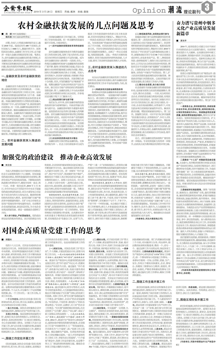 对国企高质量党建工作的思考