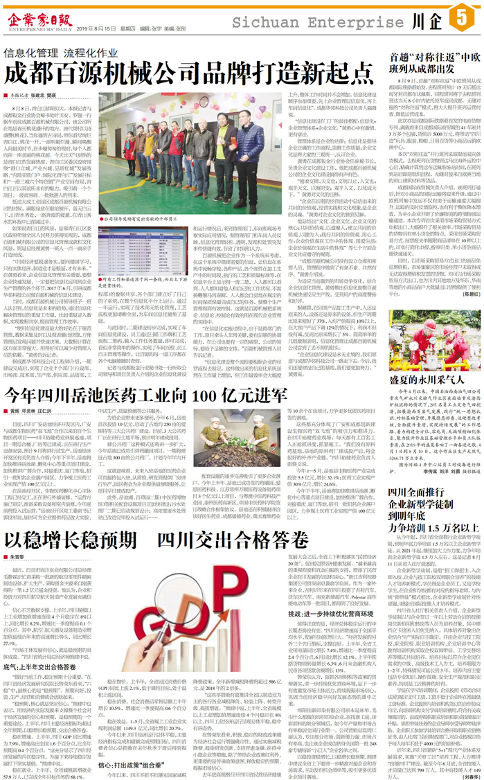 国内统一刊号:CN51—0098 中国•企业家日报