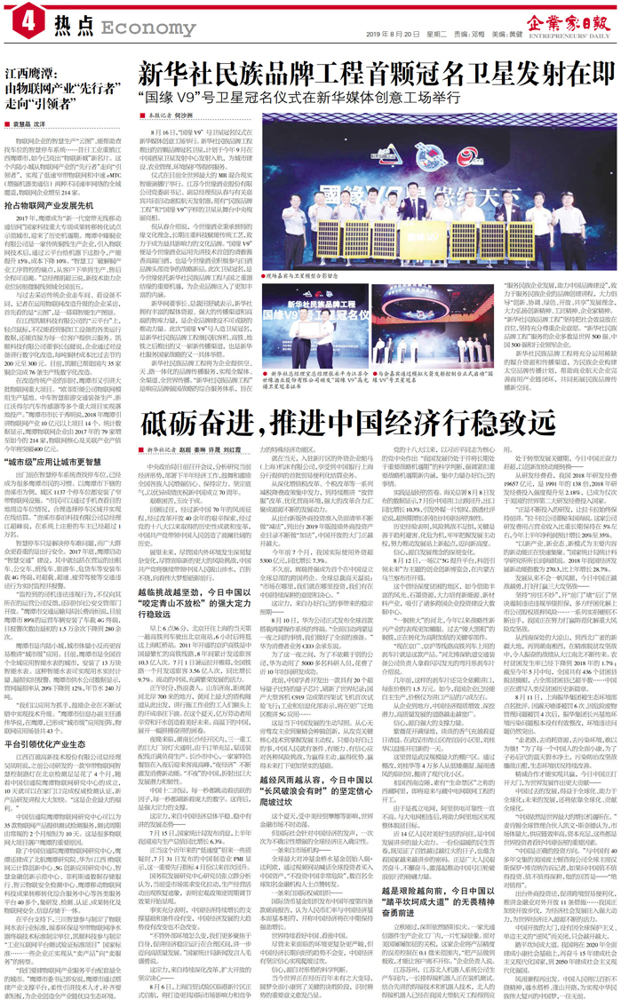 新华社民族品牌工程首颗冠名卫星发射在即...