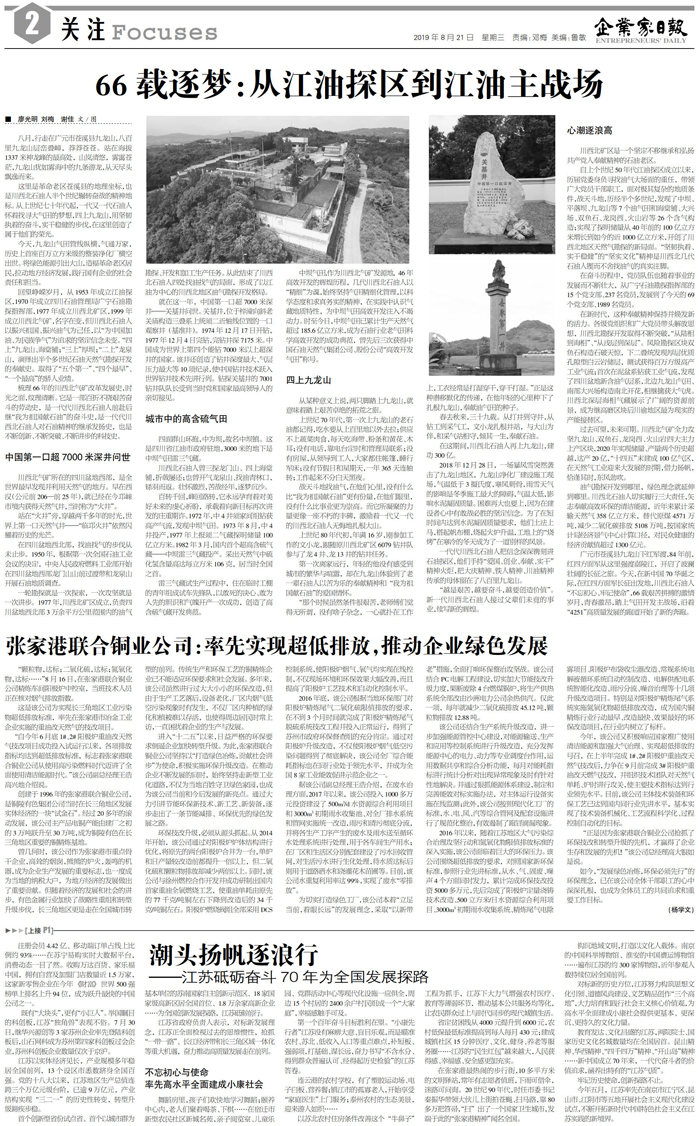 广元市苍溪县九龙山下红军渡,84年前,红四方面军从这里强渡嘉陵江,开启了波澜壮阔的长征之旅。今天,在新中国70华诞之际,在红四方面军长征出发地,川西北石油人“不忘初心、牢记使命”,66载艰苦拼搏的激情岁月,青春激昂,踏上气田开发主战场,沿着“4251”高质量发展的跑道开始了新的奔跑。