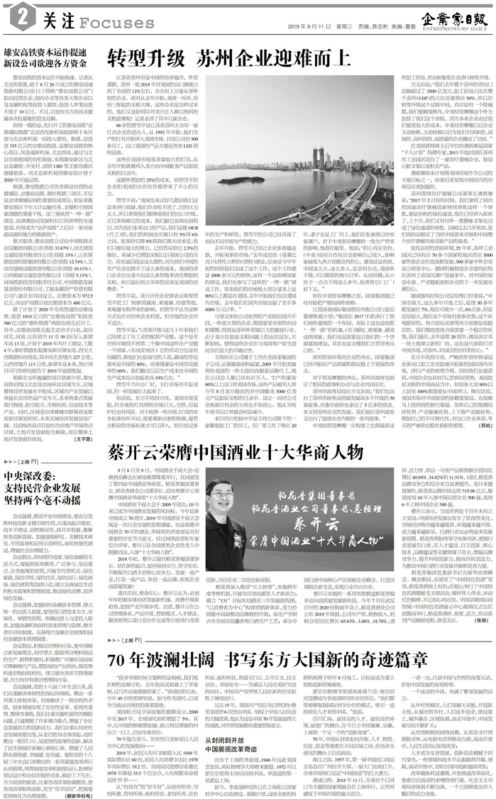 国内统一刊号:CN51—0098 中国•企业家日报