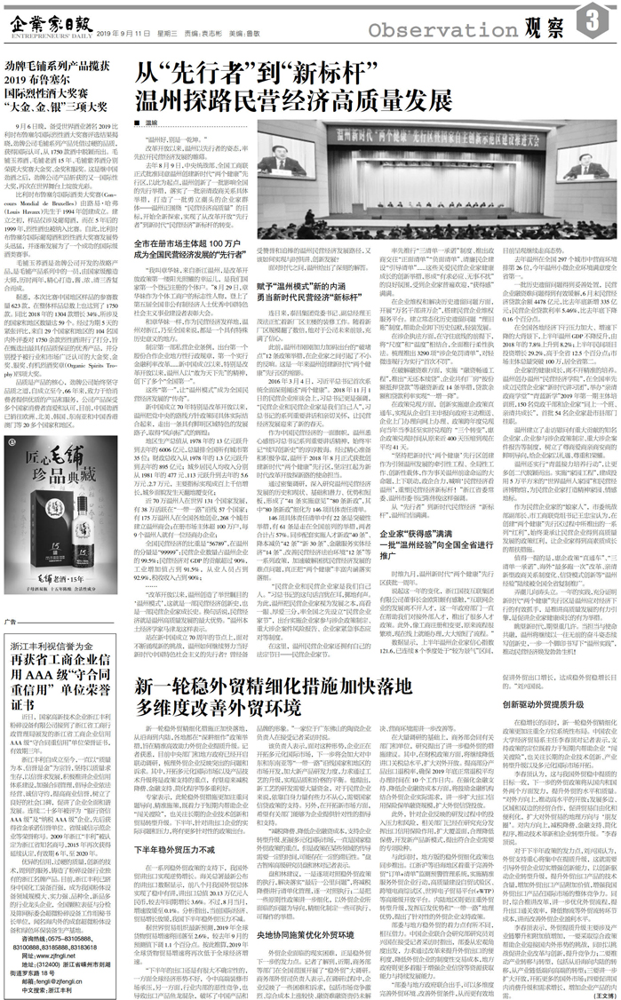 从“先行者”到“新标杆” 温州探路民营经济高...