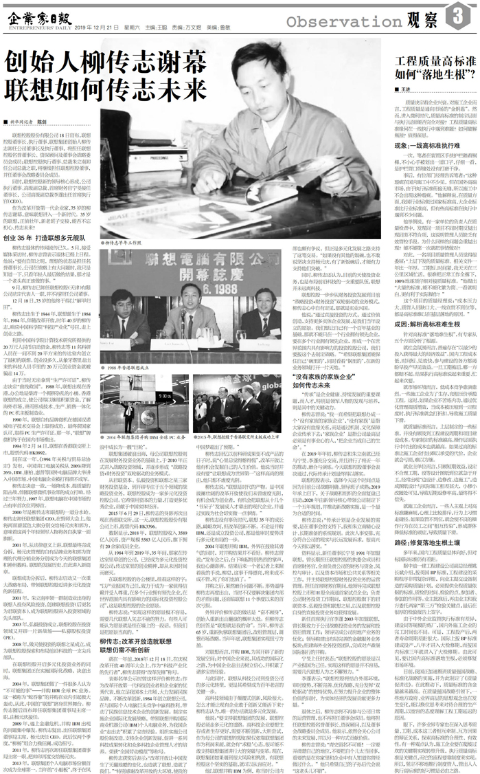 创始人柳传志谢幕 联想如何传志未来...