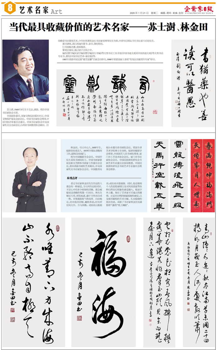 当代最具收藏价值的艺术名家——苏士澍、林金田...