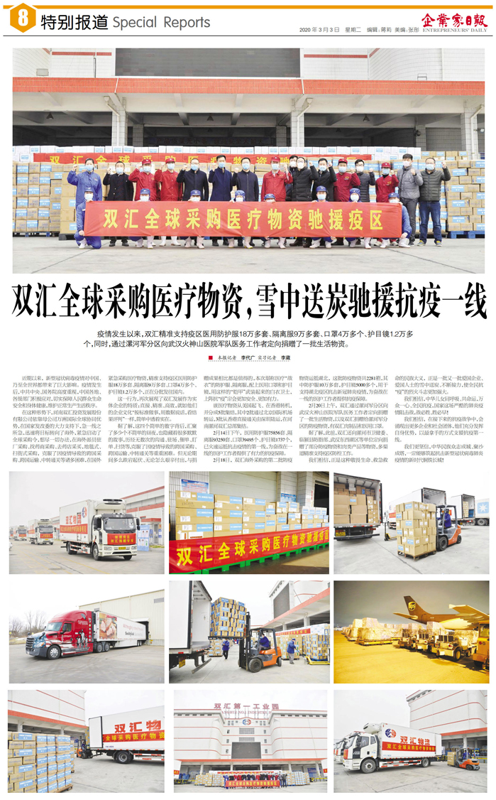 双汇全球采购医疗物资,雪中送炭驰援抗疫一线...