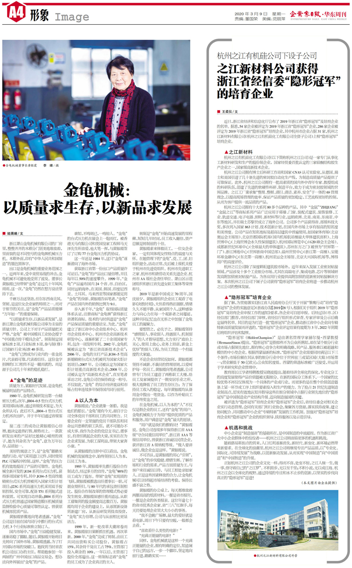 之江新材料公司获得 浙江省经信委“隐形冠军”...
