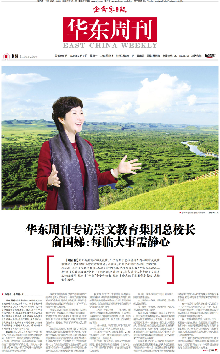 华东周刊专访崇文教育集团总校长 俞国娣:每临...