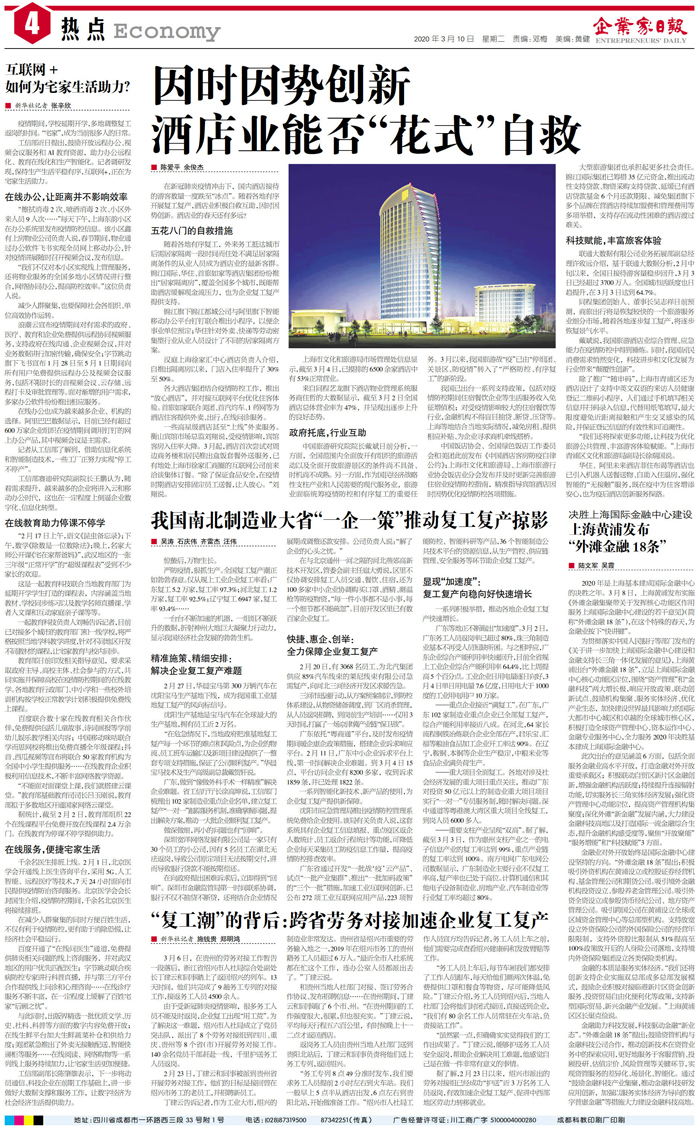 我国南北制造业大省“一企一策”推动复工复产掠...