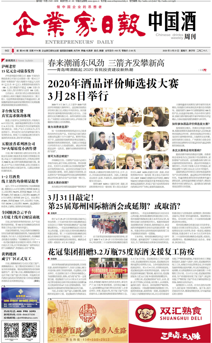 花冠集团捐赠3.2万瓶75度原酒支援复工防疫...