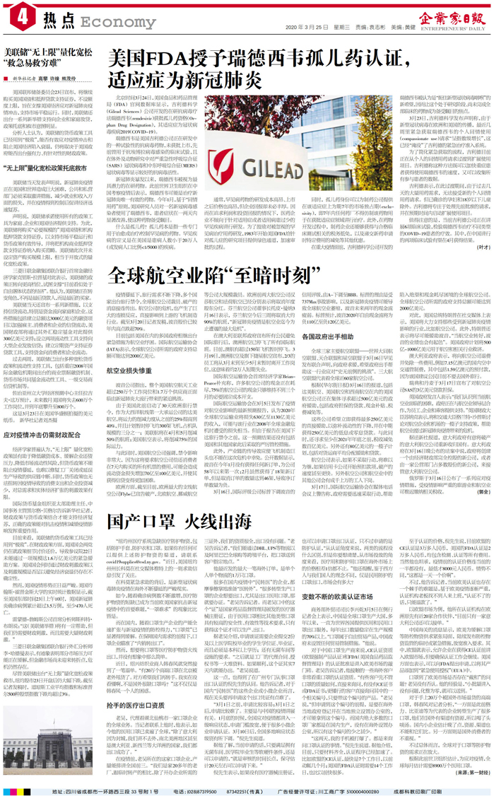 美国FDA授予瑞德西韦孤儿药认证, 适应症为新冠...