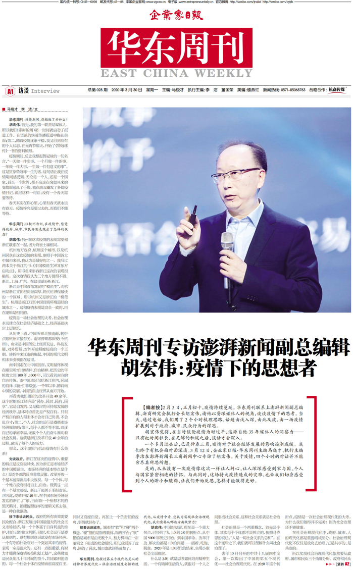 华东周刊专访澎湃新闻副总编辑 胡宏伟:疫情下...