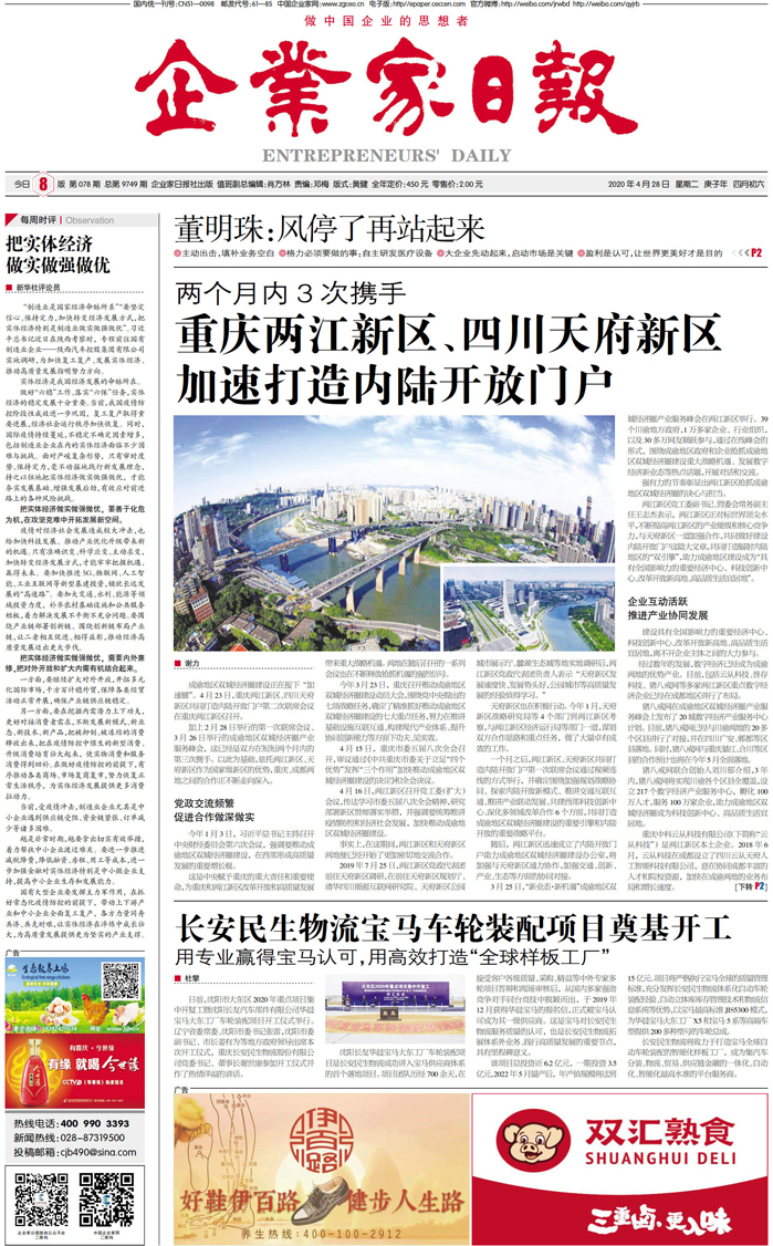 重庆两江新区、四川天府新区 加速打造内陆开放...