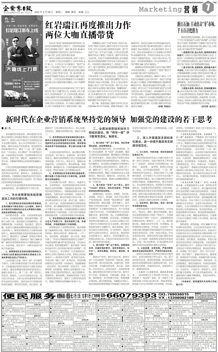 新时代在企业营销系统坚持党的领导 加强党的建...