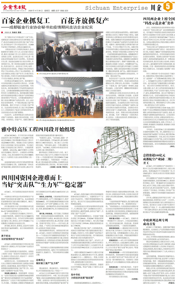 国内统一刊号:CN51—0098 中国•企业家日报